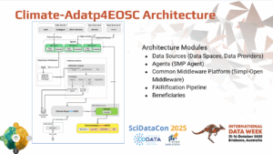 Her presentation, “Adapting to Climate Change with Open Science: Experiences from the CLIMATE-ADAPT4EOSC project,” highlighted the project’s contribution to advancing open and #FAIR data practices for climate adaptation.